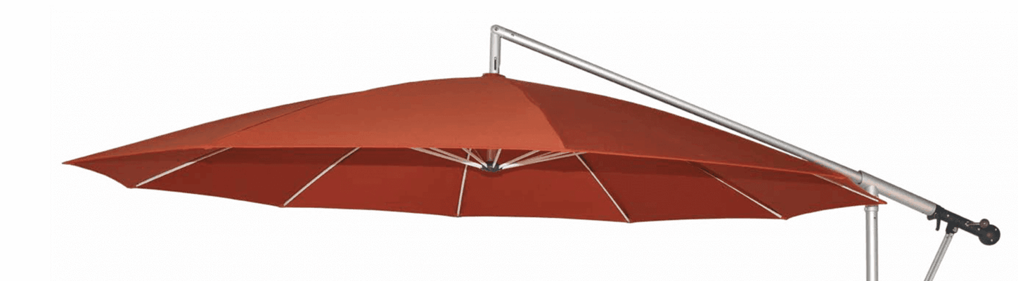 Alle notwendigen Funktionselemente liegen zentral und Sie können den Ampelschirm in jeder gewünschten Höhe bedienen. Mithilfe des Kurbelantriebs wird das Öffnen, Schließen und Positionieren des Schirms zum Kinderspiel.
